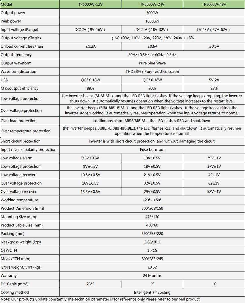Using a sturdy aircraft aluminum shell, it can provide drop and collision protection. High-end high-quality components are used inside for 5000W stable operation. Advanced dual intelligent temperature control cooling fans can quickly reduce the machine temperature, so that the inverter shell is not hot, and the operation is quiet, which is suitable for use in the home environment, but also to meet the needs of the complex outdoor environment.